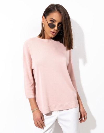 Minimalistyczny sweter o obniżonej linii ramion , o luźnym kroju z rękawem 3/4, który łączy wygodę z ponadczasowym stylem. Wykonany z miękkiej, przyjemnej w dotyku dzianiny, świetnie układa się na sylwetce i zapewnia komfort przez cały dzień. Uniwersalny fason sprawia, że idealnie pasuje zarówno do jeansów, jak i bardziej eleganckich stylizacji.