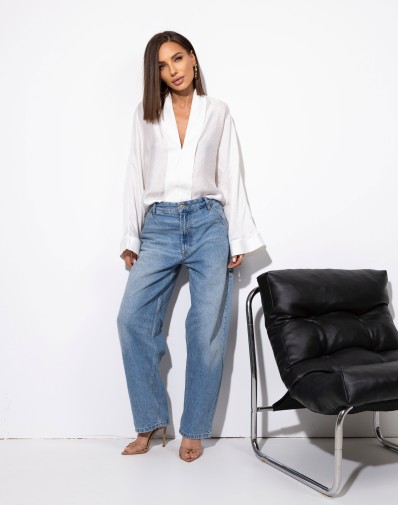 Bawełniana długa koszula z klasycznym kołnierzem i guzikami na całej długości. Luźny fason z rozcięciami po bokach i dłuższym tyłem. Długi rękaw zakończony mankietem oraz obniżona linia ramion. Must have w każdej kobiecej szafie.