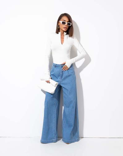 Śmietankowe body z długim rękawem . Dopasowany model. Dekolt zaokrąglony z zamkiem z przodu, długie rękawy.Tkanina prążkowana. Te eleganckie i stylowe body łączą w sobie komfort noszenia z nowoczesnym designem. Suwak z przodu dodaje odrobiny pikanterii, umożliwiając regulację głębokości dekoltu według własnych preferencji.