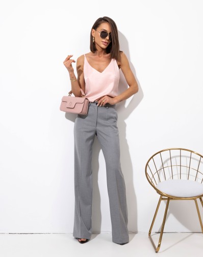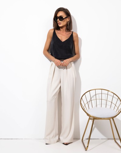 Wiskozowy top na cienkich ramiączkach. Materiał lejący. Idealny przez cały rok pod żakiet lub sweter. Na lato stylowa i wygodna bluzka do szortów lub spódnicy.