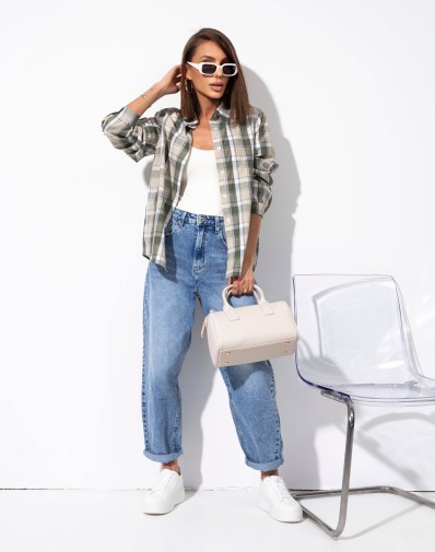 Stylowa koszula o oversize’owym kroju w modny, niebieski wzór w kratę. Wykonana z miękkiego, przyjemnego w dotyku materiału, który zapewnia wygodę przez cały dzień. Model zapinany na guziki z klasycznym kołnierzykiem i mankietami przy rękawach. Doskonale sprawdzi się w casualowych stylizacjach – noś ją z jeansami, topem lub jako lekką narzutkę. Idealna propozycja dla miłośniczek miejskiego luzu i modnego stylu vintage.