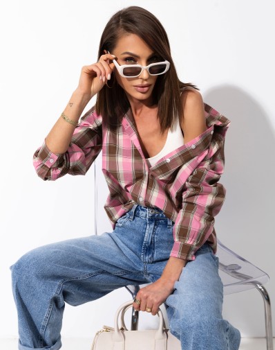 Stylowa koszula o oversize’owym kroju w modny, bordowy wzór w kratę. Wykonana z miękkiego, przyjemnego w dotyku materiału, który zapewnia wygodę przez cały dzień. Model zapinany na guziki z klasycznym kołnierzykiem i mankietami przy rękawach. Tył delikatnie dłuższy.Doskonale sprawdzi się w casualowych stylizacjach – noś ją z jeansami, topem lub jako lekką narzutkę. Idealna propozycja dla miłośniczek miejskiego luzu i modnego stylu vintage.