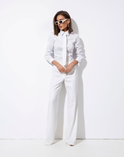 Klasyczna biała koszula damska zapinana na kryte guziki to ponadczasowa baza do wielu stylizacji. Model z klasycznym kołnierzem, długim rękawem zakończony niewielkimi mankietami Z przodu i z tyłu zrobione zakładki przez co koszula idealnie dopasowuje się w talii. Idealna zarówno do eleganckich, jak i codziennych zestawów.KRAWAT NIE JEST W ZESTAWIE .
