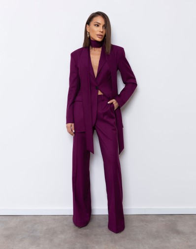 Stylowa marynarka o dopasowanym kroju, zapinana klasycznie na dwa guziki. W zestawie znajduje się odpinany panel zakładany na talię, który zapina się na kilka ozdobnych guzików, tworząc efekt nowoczesnej „mini spódniczki”. Panel podkreśla linię talii i nadaje sylwetce wyrazisty, modowy charakter.To model, który łączy klasykę z nowoczesnym detalem – idealny do stylizacji wieczorowych, biznesowych lub jako modowy akcent w stylu smart casual.
