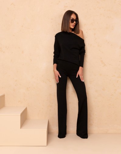 Komplet dwuczęściowy wykonany z bardzo przyjemnej dzianiny.Góra w formie bluzki z długim rękawem , luźny krój z efektownym opadającym ramieniem. Dół w formie spodni z szerszą nogawką , szeroka guma w pasie.Brak kieszeni.Przepięknie układają się na ciele.Całość kompletu tworzy ponadczasowy look idealny na co dzień jak i do wystylizowania na ważniejsze okazję .