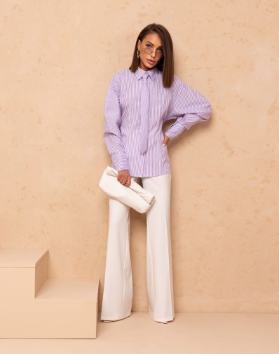 Stylowa koszula o oversize’owym kroju w paski.Z tyłu wiązana. Wykonana z miękkiego, przyjemnego w dotyku materiału, który zapewnia wygodę przez cały dzień. Model zapinany na guziki z klasycznym kołnierzykiem i mankietami przy rękawach.Dodatkowo w zestawie jest krawat , który nadaje nowoczesnego charakteru. Doskonale sprawdzi się w casualowych stylizacjach