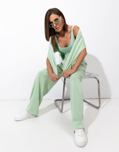 Spodnie o luźnym kroju z wysokiej jakości tkaniny jakości premium, z wysokim stanem. Zakładki z przodu. tył gładki .Zamek kryty z boku, w pasie szlufki.