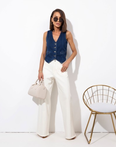 Jeansowa kamizelka wykonana z 75% bawełny ,mięsista i przyjemna dla ciała tkanina.Zapinana na guziki o swobodnym kroju, która zapewnia komfort noszenia i pełną swobodę ruchów. Wykonana z klasycznego denimu, świetnie sprawdzi się jako modny element codziennych stylizacji. Idealna do noszenia warstwowo – pasuje zarówno do sukienek, jak i zestawów z koszulą czy T-shirtem.