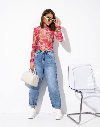 Stylowe i kobiece body z długim rękawem , które zachwyca kwiecistym printem . Model wykonany z miękkiego, elastycznego materiału doskonale dopasowuje się do sylwetki. Transparentna tkanina w kwiecisty wzór nadaje kobiecości i lekkości. Idealne zarówno do codziennych stylizacji z jeansami, jak i na wieczorne wyjścia w zestawieniu ze spodniami ze skóry lub spódnicą.