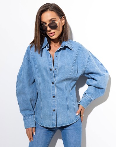 Koszula jeansowa o luźniejszym, komfortowym kroju, który zapewnia swobodę i świetnie wpisuje się w codzienne stylizacje. Model zapinany na napy, z klasycznym kołnierzykiem i ozdobnymi przeszyciami nadającymi charakteru oraz wysmuklającymi talię. Wykonana z miękkiego denimu, idealna zarówno do jeansów, jak i bardziej kobiecych zestawów. Ponadczasowy fason w nowoczesnym wydaniu.