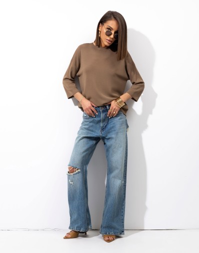 Minimalistyczny sweter o obniżonej linii ramion , o luźnym kroju z rękawem 3/4, który łączy wygodę z ponadczasowym stylem. Wykonany z miękkiej, przyjemnej w dotyku dzianiny, świetnie układa się na sylwetce i zapewnia komfort przez cały dzień. Uniwersalny fason sprawia, że idealnie pasuje zarówno do jeansów, jak i bardziej eleganckich stylizacji.