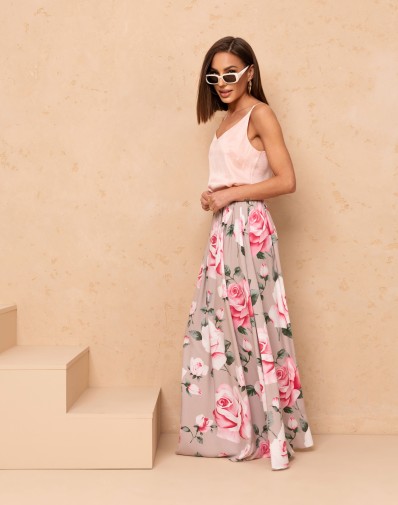 Efektowna spódnica maxi z koła, która zachwyca pięknym, kwiatowym wzorem i kobiecym fasonem. Szeroki krój pięknie układa się w ruchu, nadając stylizacji lekkości i elegancji. Model posiada praktyczne kieszenie po bokach oraz wygodne zapięcie na zamek. Idealna zarówno na co dzień, jak i na wyjątkowe okazje.