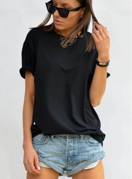 Basicowy t-shirt wykonany z elastycznej bawełny. Luźny fason. Klasyczny krój z krótkim rękawem. Obniżona linia ramion. Uniwersalny i ponadczasowy. Założysz go do ulubionych jeansów, szortów albo rozkloszowanej spódnicy.