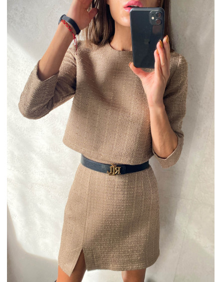Bluzka o delikatnie szerszym kroju. Z tył zapinana na guziczek