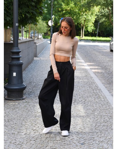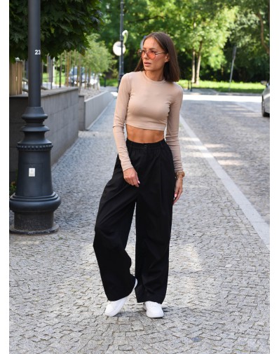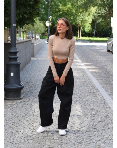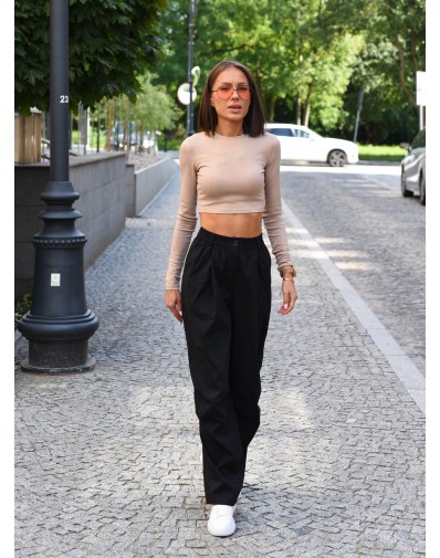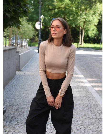 Krótki top wykonany z elastycznej dzianiny. Okrągły dekolt i długie rękawy. Crop top, który idealnie sprawdzi się jako baza do wielu codziennych stylizacji. SKŁAD: 98% bawełna, 2% elastan. Modelka prezentuje rozmiar XS.