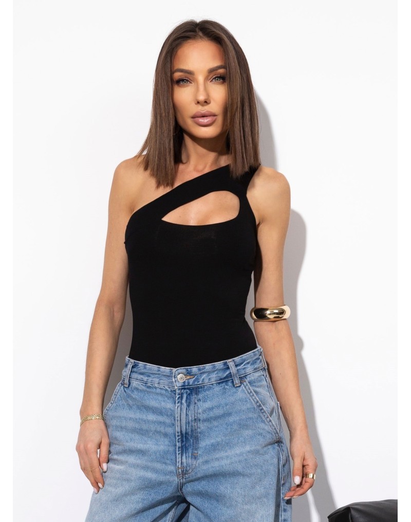 Czarna body dzianinowe na jedno ramię z dekoltem z wyciętą łezką – elegancki i stylowy wybór na każdą okazję. Wykonane z miękkiej, elastycznej dzianiny, zapewnia komfort noszenia i doskonałe dopasowanie. Modny fason na jedno ramię podkreśla kobiecą sylwetkę, a subtelny dekolt w łezkę dodaje całości wyjątkowego charakteru. Idealne zarówno na co dzień, jak i na wieczorne wyjścia. Dodaj je do swojej garderoby i ciesz się uniwersalnym, szykownym lookiem!