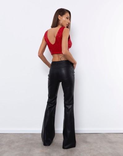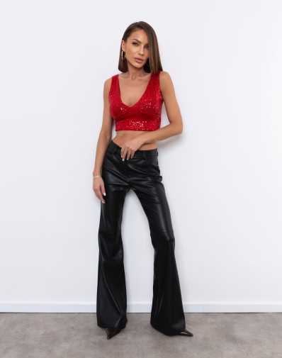 Top z Cekinami na Grubych Ramiączkach Czerwony
