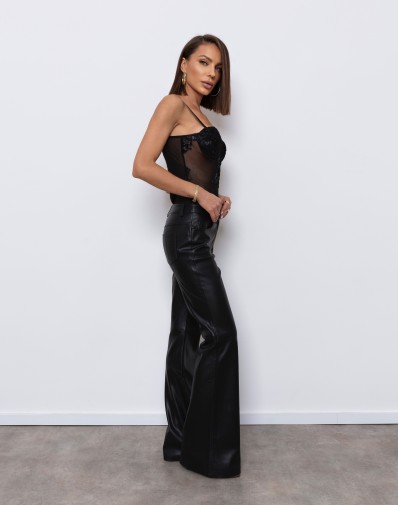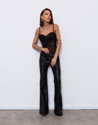 Zmysłowe body z delikatnego materiału i wszytymi kwitami .Usztywniane miseczki ,regulowane ramiączka.Idealne do stylizacji na specjalne wyjścia . Miseczki nie posiadają fiszbinów - nie dają podtrzymania biustu.