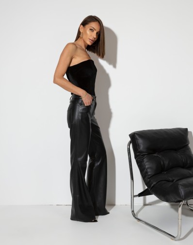 Zmysłowy welurowy gorset bez ramiączek, zapinany na zamek z tyłu. Głębszy dekolt w kształcie litery V z usztywnieniem pięknie podkreśla biust oraz podtrzymuje gorset. Ten efektowny top to perfekcyjny wybór na imprezę, romantyczną kolację czy wieczorne wyjście – dodaje pewności siebie i przyciąga spojrzenia.