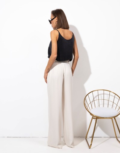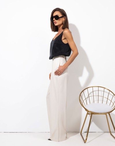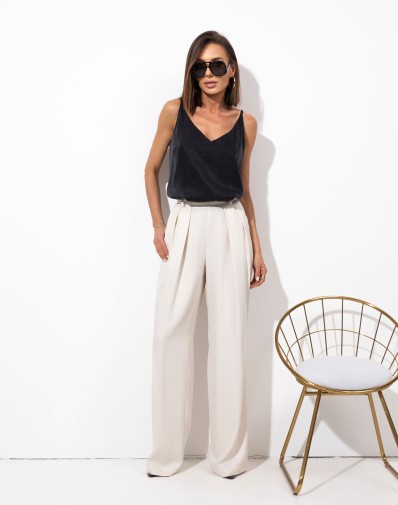 Wiskozowy top na cienkich ramiączkach. Materiał lejący. Idealny przez cały rok pod żakiet lub sweter. Na lato stylowa i wygodna bluzka do szortów lub spódnicy.