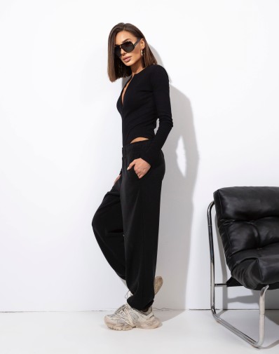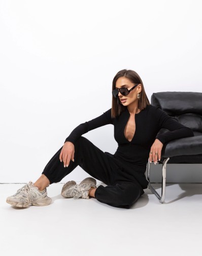 Czarne body z długim rękawem . Dopasowany model. Dekolt zaokrąglony z zamkiem z przodu, długie rękawy.Tkanina prążkowana. Te eleganckie i stylowe body łączą w sobie komfort noszenia z nowoczesnym designem. Suwak z przodu dodaje odrobiny pikanterii, umożliwiając regulację głębokości dekoltu według własnych preferencji.
