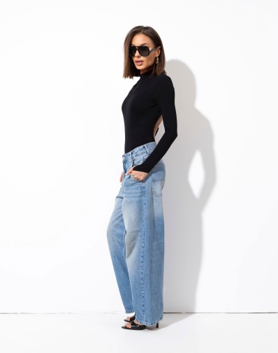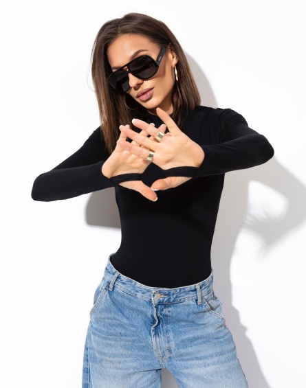 Kobiece body z golfem i mocno wyciętymi plecami. Dopasowany model z długimi rękawami wykończone otworem na palce. Te eleganckie i stylowe body łączą w sobie komfort noszenia z nowoczesnym designem.Elegancja z odrobiną z odrobiną zmysłowości, sprawia, że mogą być idealne na różne okazje, zarówno na co dzień, jak i na bardziej formalne wydarzenia.