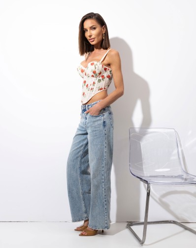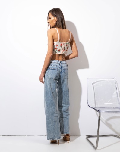 Gorset z Siatki w Róże Ecru K9108