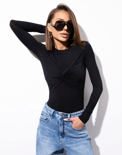 Body z długim rękawem. Wykonane z delikatnej wiskozowej dzianiny. Idealnie sprawdzi się w stylizacjach codziennych oraz eleganckich, noszone samodzielnie lub pod marynarkę.