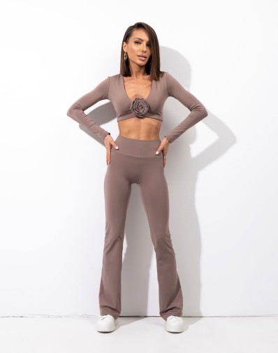 Krótki, dopasowany top z eleganckim dekoltem w serek i długim rękawem. Pod biustem wszyta guma zapewnia idealne dopasowanie i komfort noszenia. Przód i tył topu uszyty jest z podwójnego materiału oraz posiada wkładki na biust, dzięki czemu nic nie prześwituje. Dołączona materiałowa róża daje możliwość efektownego,romantycznego uroku.Klasyczny model, który świetnie sprawdzi się w wielu stylizacjach.Stwórz zestaw z innymi modelami MELLA .