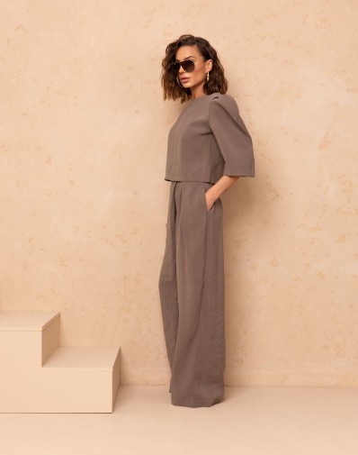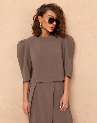 Krótsza, gładka bluzka o minimalistycznym, a zarazem kobiecym charakterze. Model zapinany na zamek z tyłu, co zapewnia wygodę noszenia i estetyczne wykończenie.Bufiaste rękawy o długości do łokcia nadają całości lekkości i subtelnej objętości, podkreślając wyjątkowy styl bluzki.Idealna propozycja zarówno do eleganckich, jak i codziennych stylizacji.