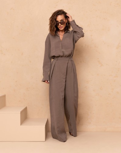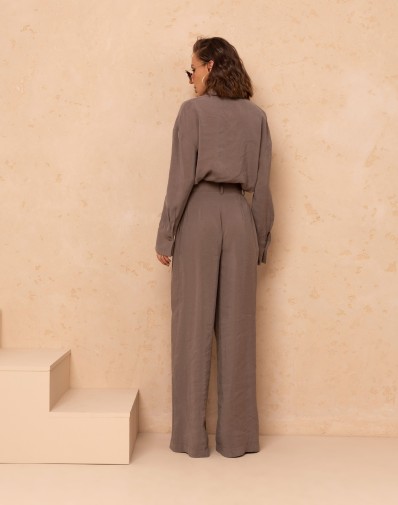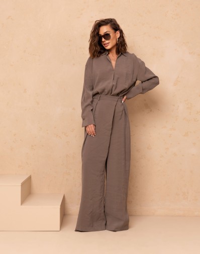 Wiskozowa koszula o swobodnym, ponadczasowym fasonie. Model z dekoltem w serek i klasycznym kołnierzykiem, który subtelnie podkreśla linię szyi. Obniżona linia ramion nadaje całości luźniejszego, nowoczesnego charakteru.Koszula gładka,rękawy zakończone szerokimi mankietami zapinanymi na guzik. Doskonale sprawdzi się zarówno jako element codziennej stylizacji, jak i w połączeniu z dopasowanymi spodniami czy spódnicą.