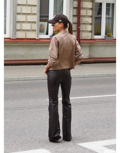 Elegancka bluza w odcieniu ciepłego beżu, wyróżniająca się subtelną aplikacją w formie materiałowej róży na ramieniu. Klasyczny fason z okrągłym dekoltem i delikatnie bufiastymi rękawami łączy wygodę z kobiecym akcentem. Idealna do stylizacji casualowych i eleganckich na co dzień.