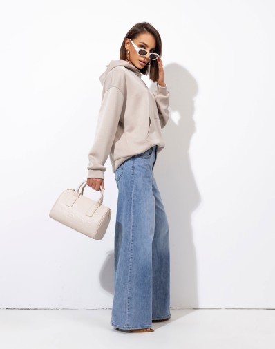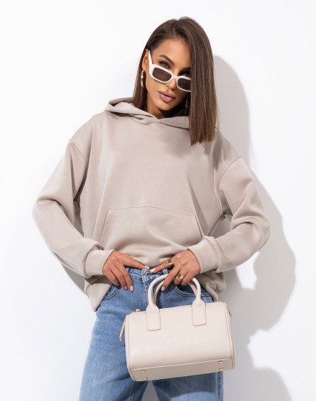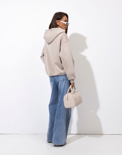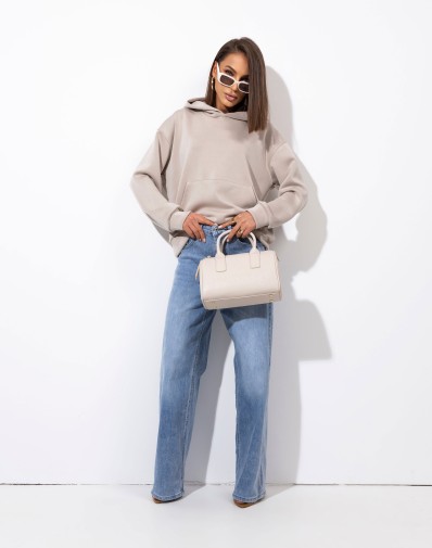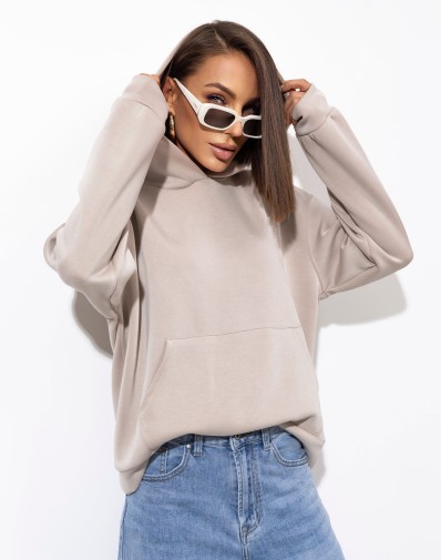 Bluza w odcieniu beżu, utrzymana w klasycznym stylu z kapturem i dużą kieszenią z przodu. Wykonana z miękkiej, przyjemnej w dotyku masełkowej dzianiny, gwarantuje komfort noszenia na co dzień. Rękawy zakończone mankietami. To uniwersalna bluza, która doskonale sprawdzi się zarówno do luźnych stylizacji, jak i w bardziej casualowych zestawach.
