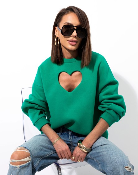 Oversizowa bluza z wyciętym serduszkiem, idealne połączenie stylu, komfortu i oryginalnego designu. Jej krój zapewnia swobodę i modny, casualowy look, a wycięcie w kształcie serca na dekolcie dodaje jej subtelnej kobiecości i niepowtarzalnego charakteru. Wykonana z miękkiej bawełny od spodu na misiu, który zapewnia przyjemne ciepło w chłodniejsze dni. Wyjątkowa, komfortowa w noszeniu.