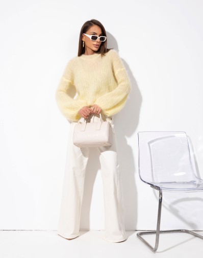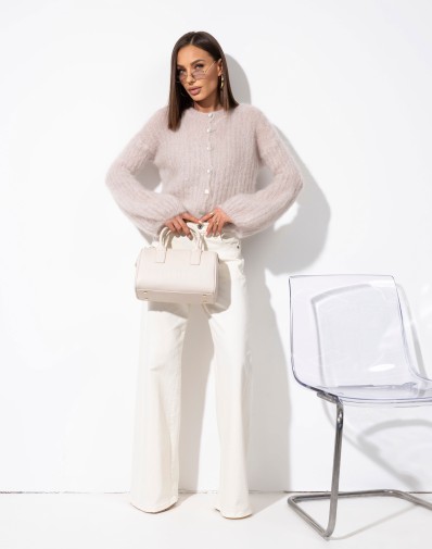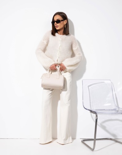 Uroczy i niezwykle kobiecy sweterek w przepięknym odcieniu beżu który doda świeżości każdej stylizacji. Wykonany w 80% z miękkiego kid moheru, zachwyca swoją lekkością i delikatnością. Wkładany przez głowę, luźne 3/4 rękawy – łączy elegancję z komfortem noszenia.To idealny wybór zarówno do codziennych, jak i bardziej romantycznych zestawień. Świetnie wygląda w połączeniu z jeansami, spódnicą czy sukienką.