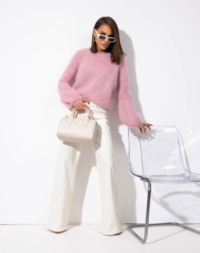 Miękki sweter z szerokimi rękawami w odcieniu pudrowego różu to połączenie wygody i stylu. Wykonany z puszystej, przyjemnej w dotyku dzianiny, zapewnia ciepło i komfort w chłodniejsze dni. Ma luźny fason, a szerokie rękawy zwężane przy nadgarstkach dodają mu nowoczesnego charakteru. Prosty dekolt i delikatne wykończenia sprawiają, że świetnie komponuje się zarówno z jeansami, jak i bardziej eleganckimi spodniami. To idealny wybór dla kobiet, które cenią sobie klasykę w modnym, współczesnym wydaniu.