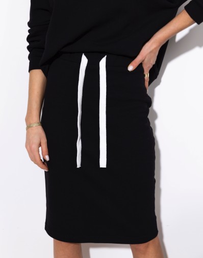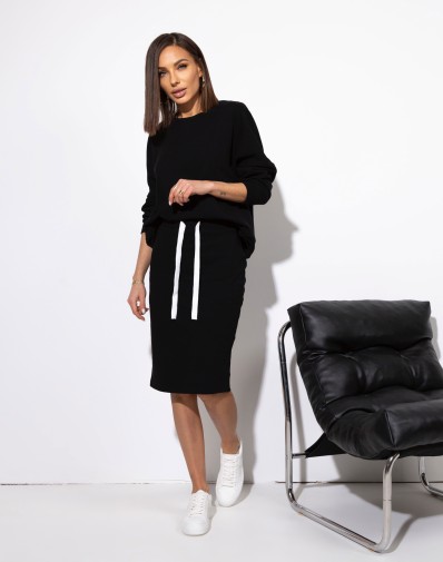 Komplet wykonany z dzianiny dresowej. Spódnica dopasowana. W pasie guma. Góra w formie szerokiej bluzy. Wykończona ściągaczami.SKŁAD : 80% bawełna 20% poliesterModelka mierzy 166cm i prezentuje rozmiar XSPRODUKT POLSKI