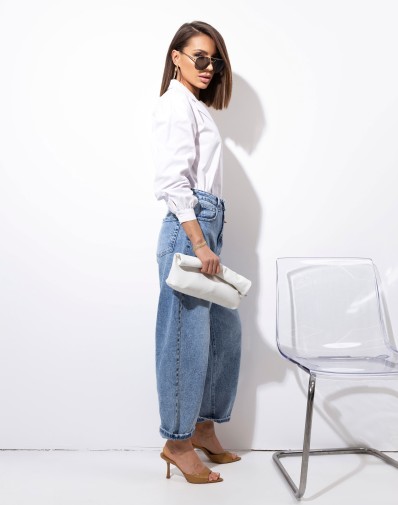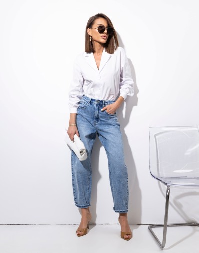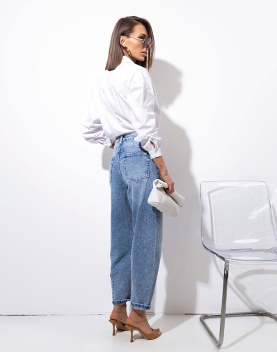 Koszula wykonana z delikatnie elastycznej bawełny. Zapinana na mleczne guziki.