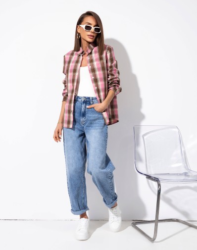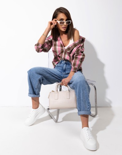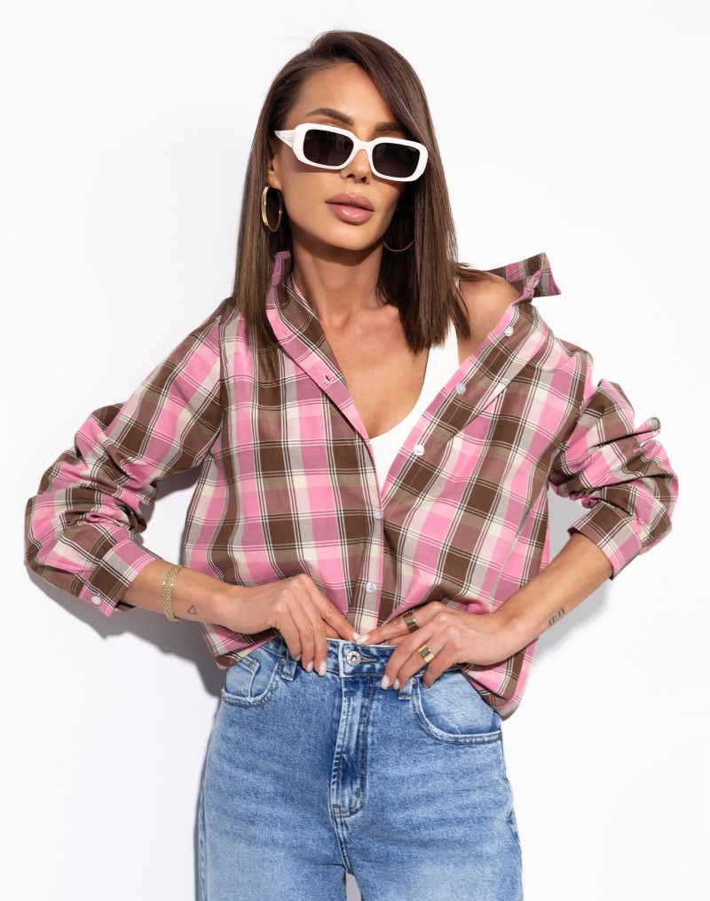 Stylowa koszula o oversize’owym kroju w modny, bordowy wzór w kratę. Wykonana z miękkiego, przyjemnego w dotyku materiału, który zapewnia wygodę przez cały dzień. Model zapinany na guziki z klasycznym kołnierzykiem i mankietami przy rękawach. Tył delikatnie dłuższy.Doskonale sprawdzi się w casualowych stylizacjach – noś ją z jeansami, topem lub jako lekką narzutkę. Idealna propozycja dla miłośniczek miejskiego luzu i modnego stylu vintage.
