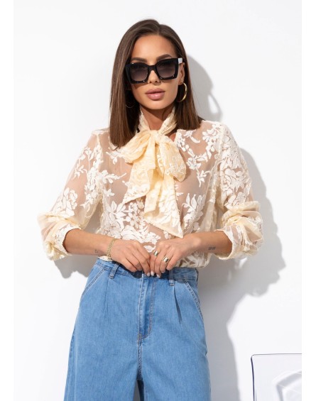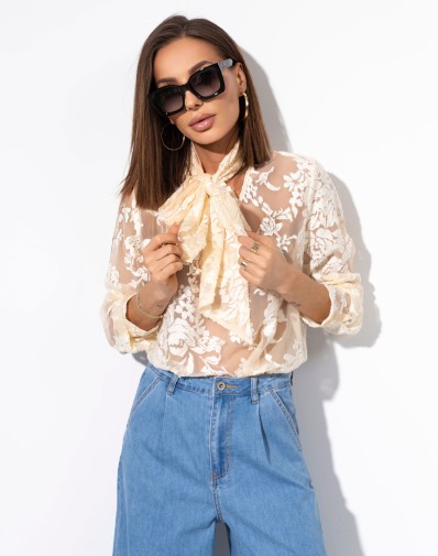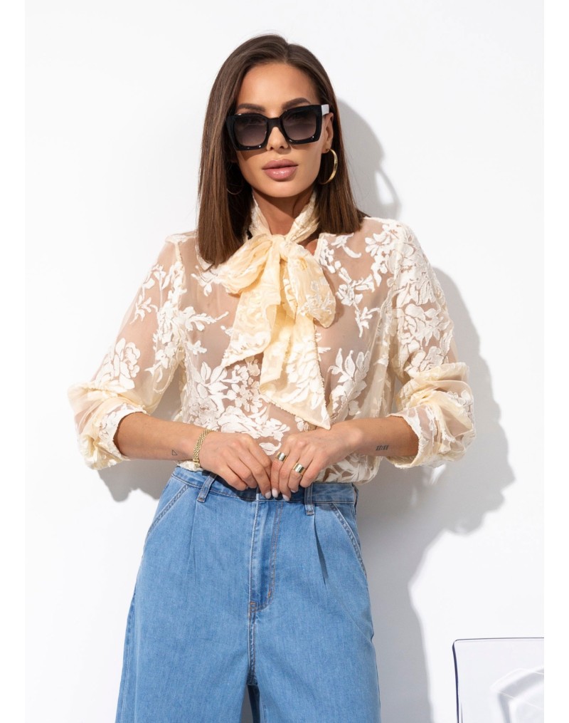 Elegancka koszula, która łączy w sobie wyjątkowy styl i komfort noszenia. Wykonana z cienkiej, zwiewnej tkaniny , doskonale sprawdzi się zarówno na co dzień, jak i na specjalne okazje.Dekolt w serek.Koszula posiada subtelną szarfę przy szyi, która dodaje jej niezwykłego uroku i elegancji..Długie rękawy zakończone klasycznie z delikatną zakładką na końcu rękawa.Materiał jest lekki i przewiewny. Idealna na cieplejsze dni, zapewnia komfort noszenia i swobodę ruchów.