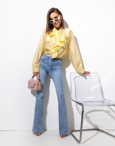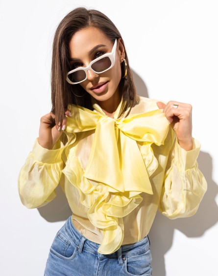 Koszula z Falbanką Wiązana Żółta 0034
