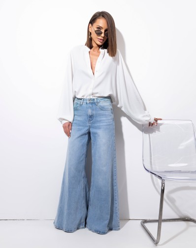 Koszula o kroju "kimono" dzięki czemu model jest luźny i swobodny. Subtelny kołnierz,zapinana po długości na guziki.Rękawy zakończone niewielkim mankietem zapinanym na guzik.Kołnierz na stójce.Klasyczny,gładki model idealny do codziennych jak i wyjściowych stylizacji.