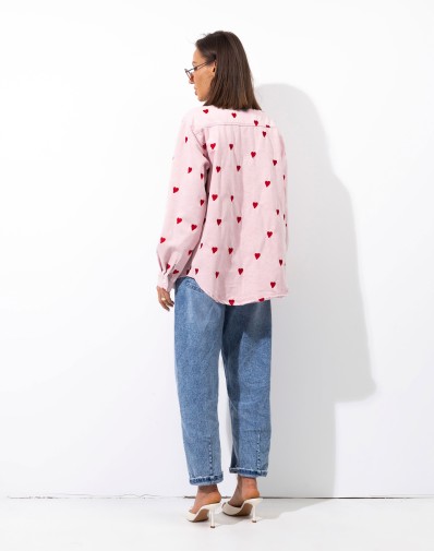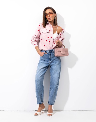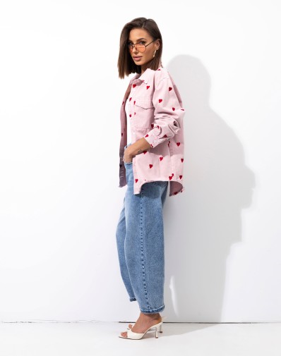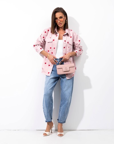 CZAS WYSYŁKI 7DNI ROBOCZYCH Stylowa bawełniana koszula z jeansowej tkaniny o klasycznym kroju z motywem wyszytych czerwonych serc. Wykonana z miękkiego, przyjemnego w dotyku materiału, który zapewnia wygodę przez cały dzień. Model zapinany na guziki z klasycznym kołnierzykiem i mankietami przy rękawach zapinanych na guziki.Z przodu dwie kieszonki z patkami.Doskonale sprawdzi się w casualowych stylizacjach – noś ją z jeansami, topem lub jako lekką narzutkę.