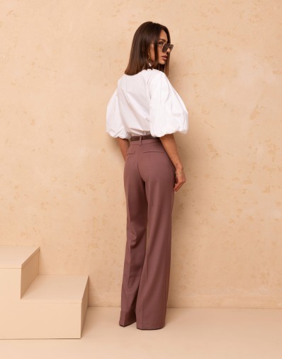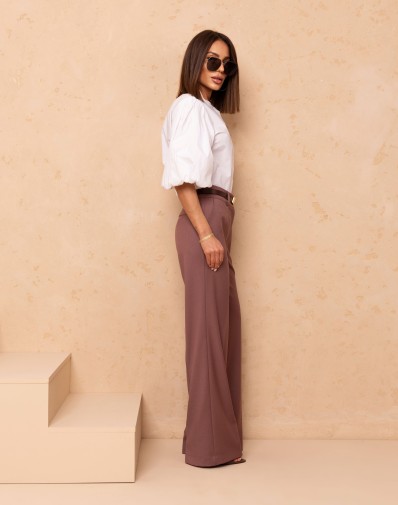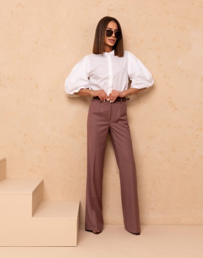 Minimalistyczna, a jednocześnie niezwykle stylowa bluzka w odcieniu bieli to idealna propozycja dla kobiet ceniących ponadczasową elegancję. Model o luźnym, oversize’owym kroju zapewnia komfort noszenia i swobodę ruchów, a subtelna stójka oraz bufiaste rękawy nadają całości nowoczesnego charakteru,dzięki czemu bluzka świetnie sprawdzi się zarówno w codziennych stylizacjach, jak i bardziej eleganckich zestawach. Doskonale komponuje się z jeansami, spodniami materiałowymi czy spódnicą.