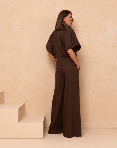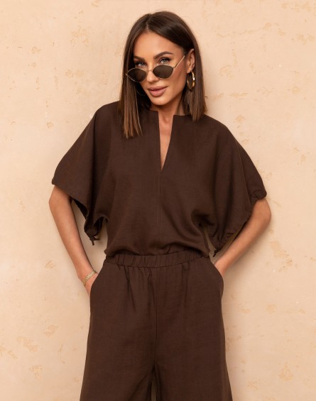 Modelka mierzy 168cm i prezentuje roz.S MATERIAŁ: 90% TENCEL 10% LEN