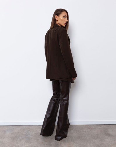 Stylowa marynarka o dopasowanym kroju, zapinana klasycznie na dwa guziki. W zestawie znajduje się odpinany panel zakładany na talię, który zapina się na kilka ozdobnych guzików, tworząc efekt nowoczesnej „mini spódniczki”. Panel podkreśla linię talii i nadaje sylwetce wyrazisty, modowy charakter.To model, który łączy klasykę z nowoczesnym detalem – idealny do stylizacji wieczorowych, biznesowych lub jako modowy akcent w stylu smart casual.