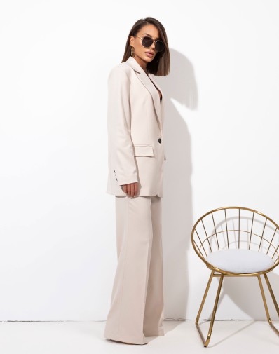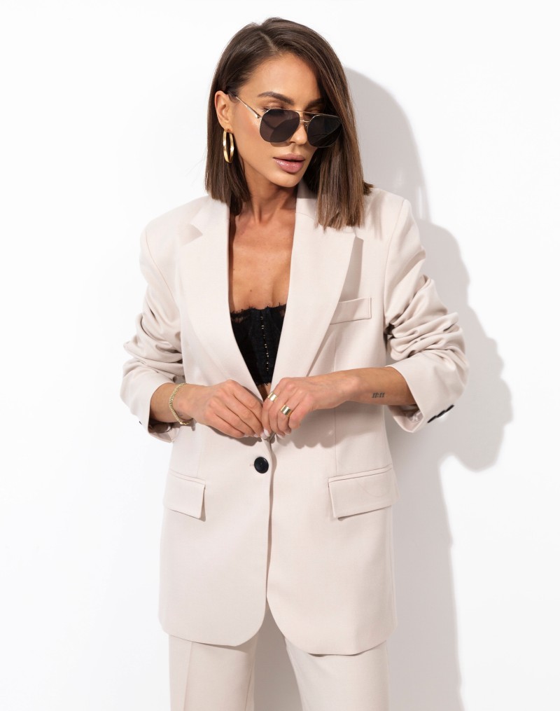 Marynarka wykonana z wysokiej jakości tkaniny , uszyta z największą dbałością o detale. Zapinana na jeden guzik. Rękaw długi. Obniżona linia ramion.W ramionach wszyte poduszki.Całość na podszewce.Z tyłu praktyczne rozcięcie. Polecamy w komplecie ze spodniami KARMEN z naszej kolekcji.