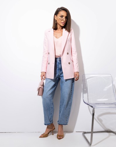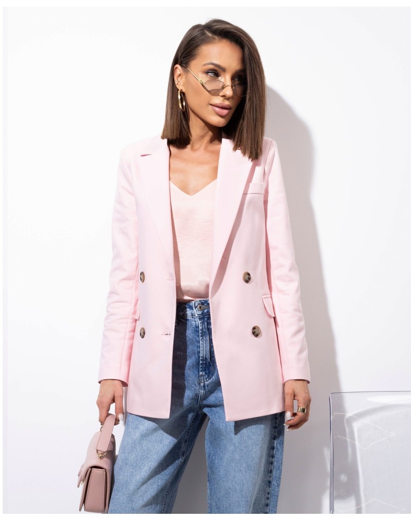 Marynarka dwurzędowa o prostym kroju. Ponadczasowy i elegancki fason. Rękawy długie. Na wysokości bioder ozdobne patki. Klasyczne klapy. Od spodu gładka podszewka. Absolutny hit.