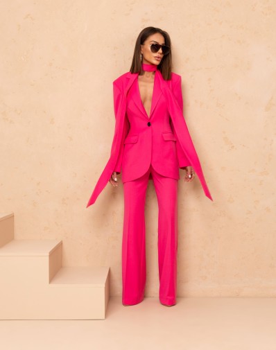 Elegancka,taliowana marynarka o wąskim kroju.Z detalami w postaci poduszek w ramionach oraz paska, uosabia zarówno styl, jak i funkcjonalność.Dzięki wąskiej talii i dopasowanemu krojowi, ten model oferuje wyrafinowaną, szykowną sylwetkę. Wszechstronny krój oferuje wiele opcji stylizacji, dzięki czemu jest to najlepszy element garderoby.