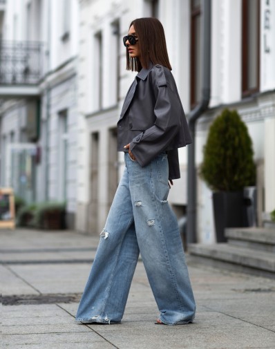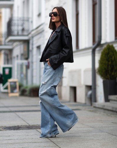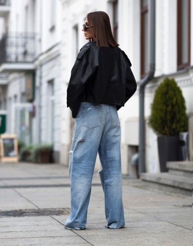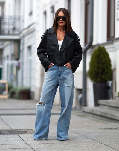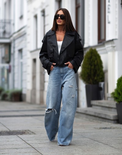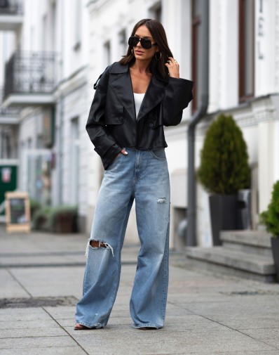 Nowoczesny trencz w krótszej odsłonie, wykonany z wysokiej jakości eko skóry. Klasyczny kołnierz, zapinanie na guzik oraz dekoracyjne patki z przodu nadają mu ponadczasowego charakteru z nutą elegancji.Uniwersalna długość sprawia, że doskonale komponuje się zarówno z jeansami, jak i sukienką. To idealny wybór dla kobiet, które lubią łączyć klasykę z nowoczesnym stylem.Na podszewce.